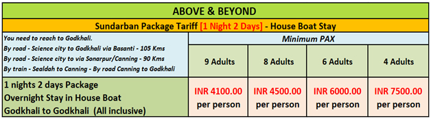 SUNDERBAN PACKAGE TARIFF- House Boat stay [1 night 2 days]