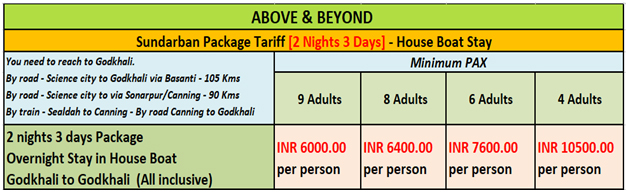 SUNDERBAN PACKAGE TARIFF- House Boat stay [2 night 3 days]